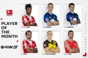 体育资讯2月4日讯 德甲联赛公布了一月份最佳球员候选名单,拜仁、汉堡均有两名球员入选。