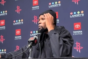 体育资讯3月6日讯 NBA常规赛,火箭在主场以113-115加时不敌勇士。赛后,杜兰特接受采访。
