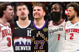 1-5依次是:约基奇、东契奇、康宁汉姆、哈登、吉迪。