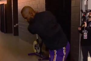 GIF-詹姆斯赛前练习高尔夫