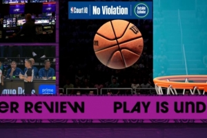 高科技回放显示盖帽时球未在篮筐正上方范围内