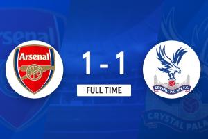 下半场补时9分钟。最终阿森纳1-1水晶宫进点球大战。