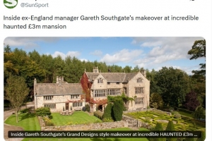 太阳报:索斯盖特准备改造其325万镑闹鬼豪宅 但得给蝙蝠留空间