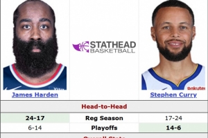 库里和哈登将再迎对决,据统计,这是两人常规赛生涯第42次交手,此前哈登24胜17负占据优势。