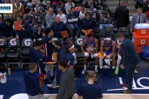 GIF-约基奇西装革履声情并茂指点掘金替补席 皮克特频频点头