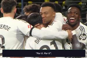 据转播方Movistar的镜头记录,姆巴佩在打进这粒勺子点球后专门拥抱并亲吻了队友布拉欣·迪亚斯,并向后者说:“(进球是)为了你,为了你。”