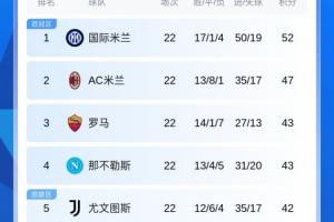 目前国米52分第一,米兰近5轮3平,目前他们47分第二。罗马、那不勒斯43分排名第三和第四。